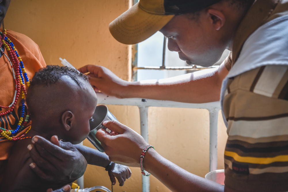 Jackson(right), a nutritionist with MSF at Illeret Health Center, shows Guone how to feed her nine month old daughter Egura.Migration pushbacks