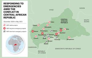 Since late December, the situation in Central African Republic (CAR) has quickly worsened, as clashes between a coalition of non-state armed groups and government forces supported by foreign troops, which began amid contested elections, have escalated. In response, Médecins Sans Frontières/Doctors Without Borders (MSF) have deployed emergency teams across the country to assist people affected by the violence who live in constant fear of attack by all sides. This is what our teams found in Bossembélé, Grimari and Ippy, three areas hit by the conflict Article - 12 May 2021